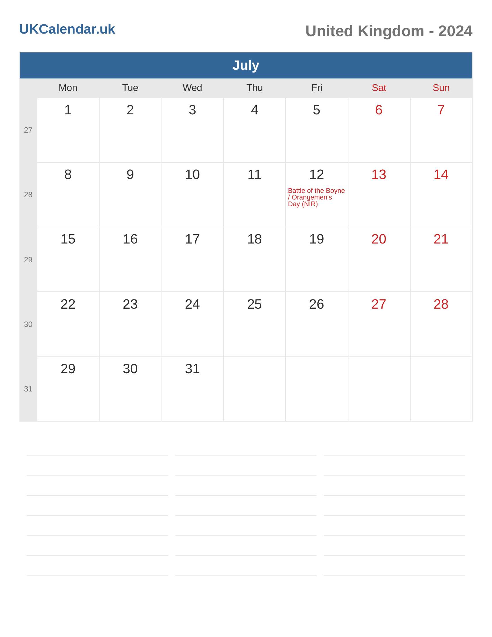 United Kingdom Calendar 2024 - July