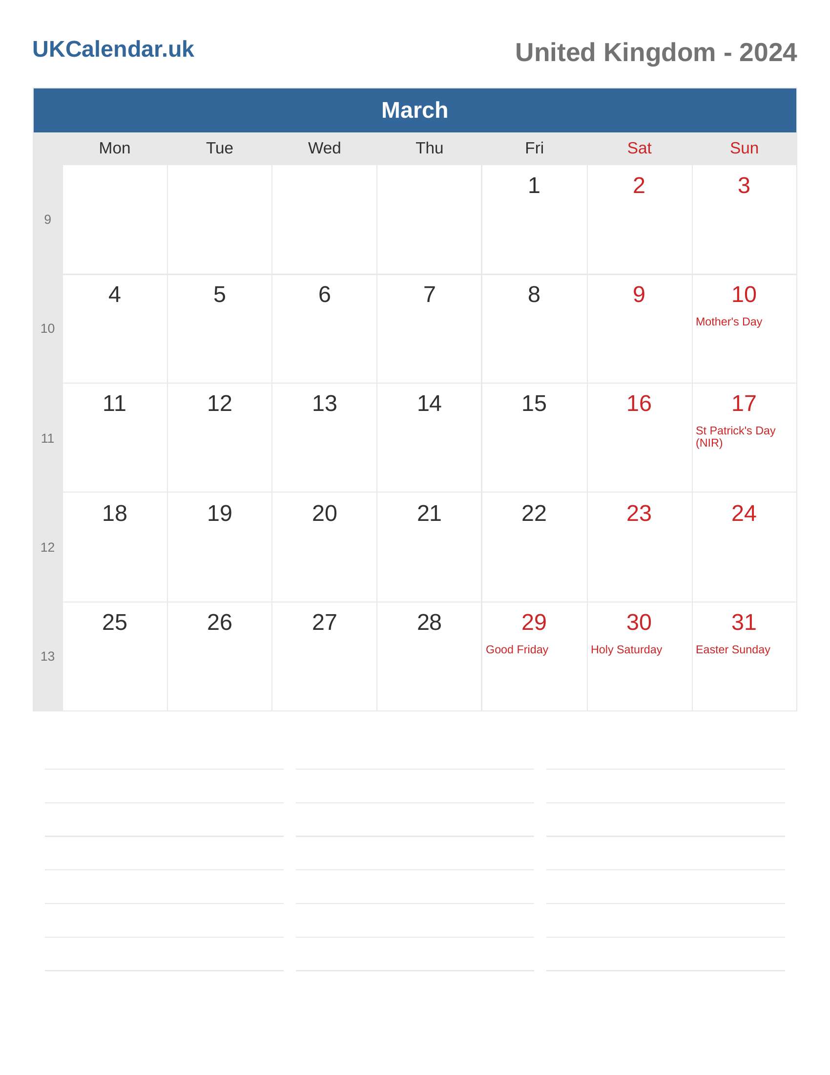 United Kingdom Calendar 2024 - March