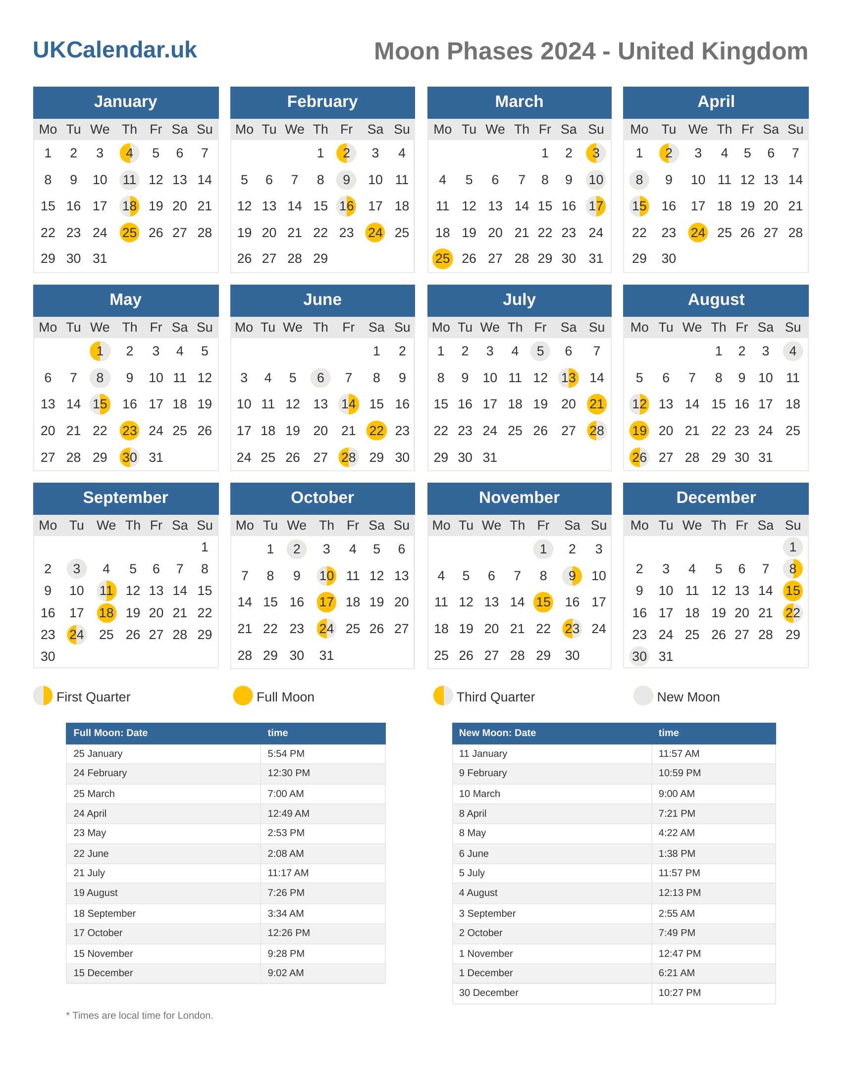 Moon Phases 2024 - United Kingdom
