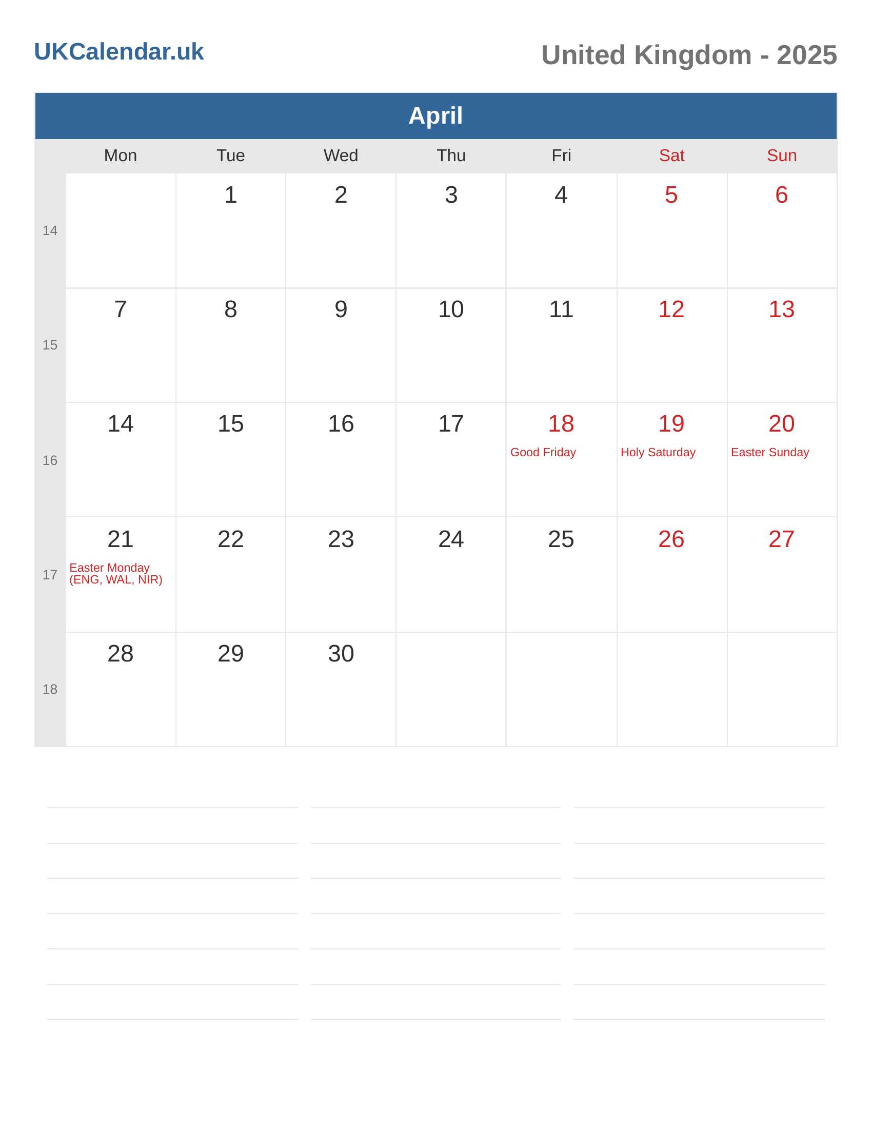 United Kingdom Calendar 2025 - April