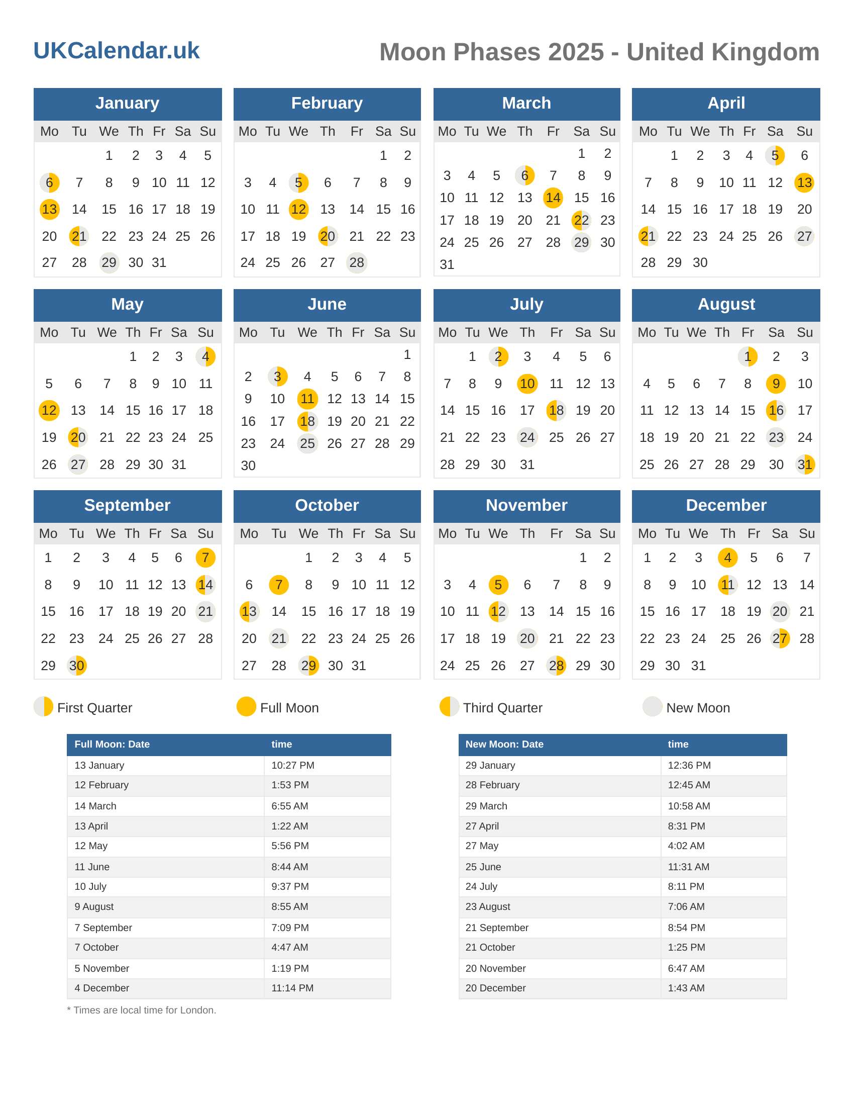 Moon Phases 2025 - United Kingdom