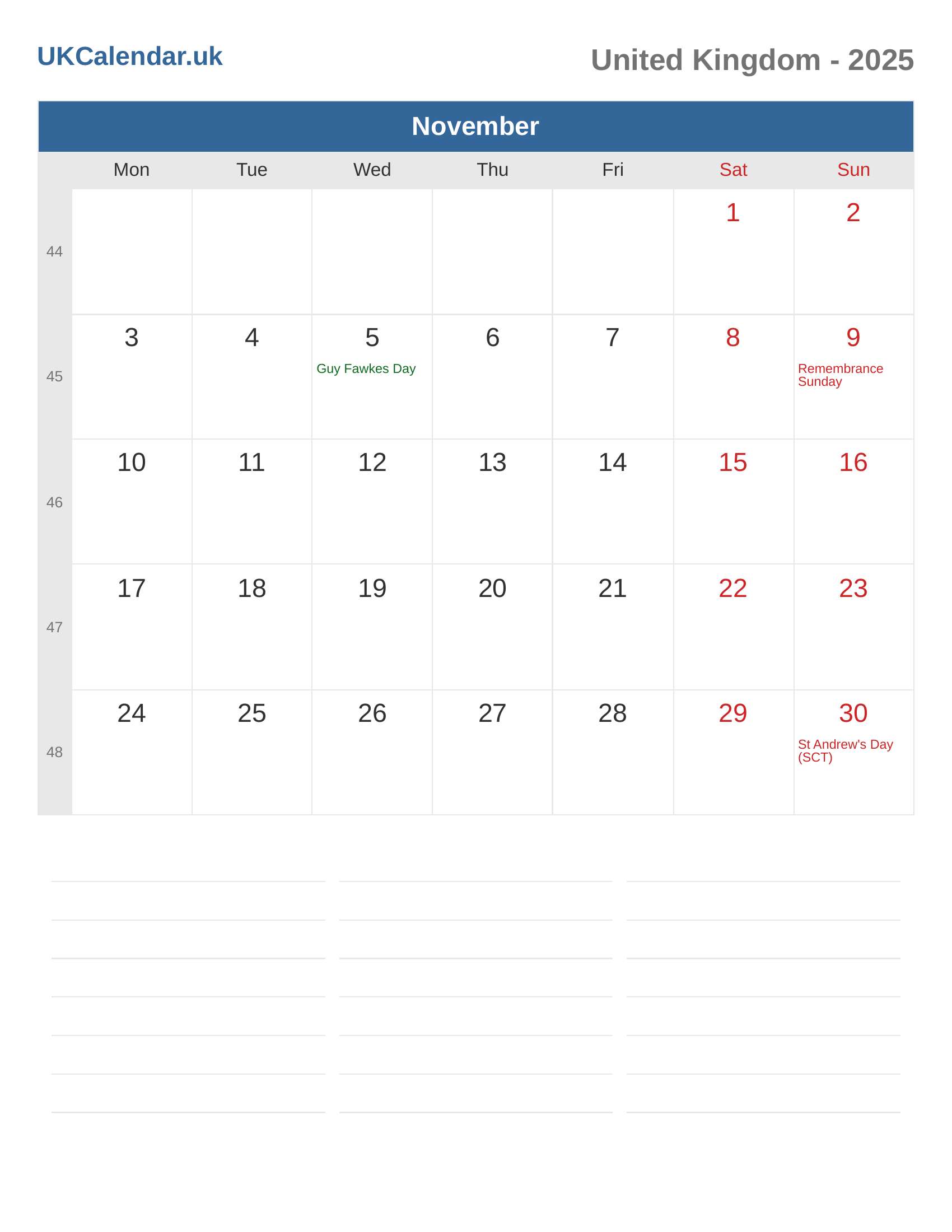 Calendar November 2025 - United Kingdom