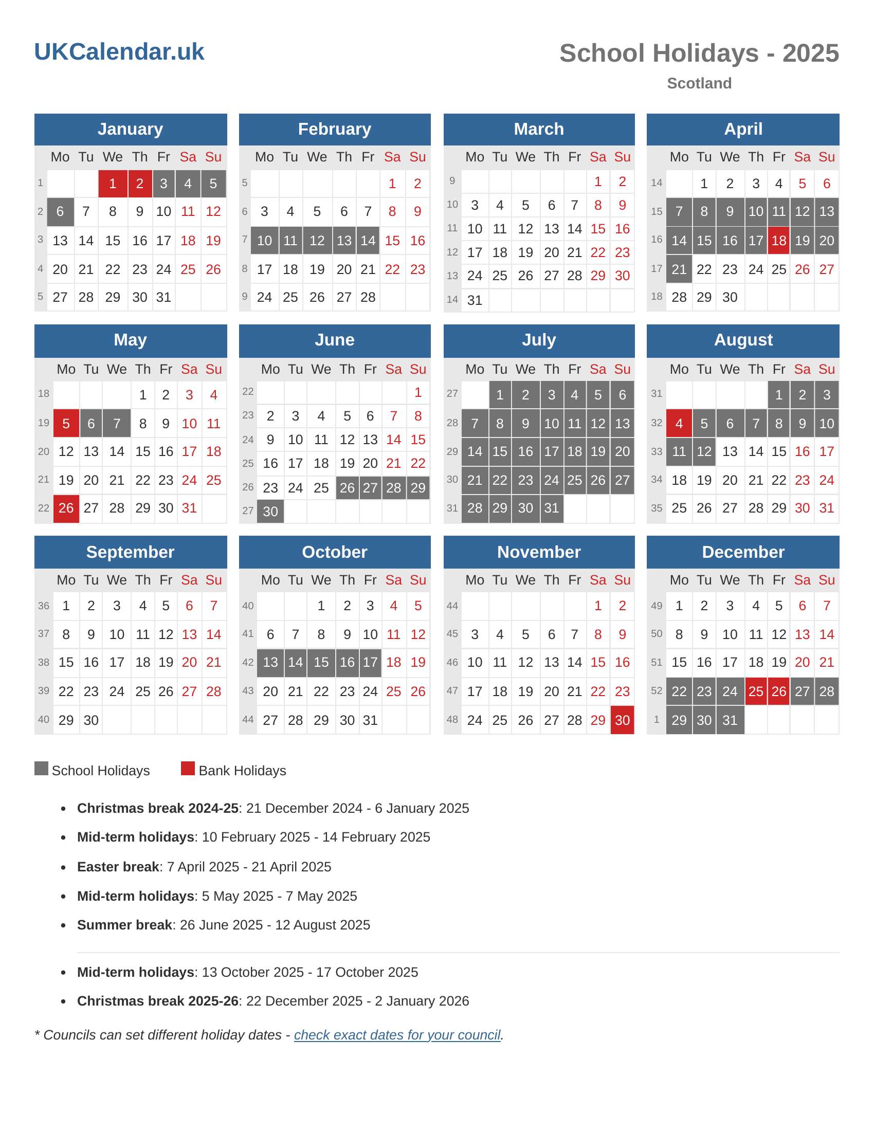 Download School Holidays 2025 Calendar (Scotland)