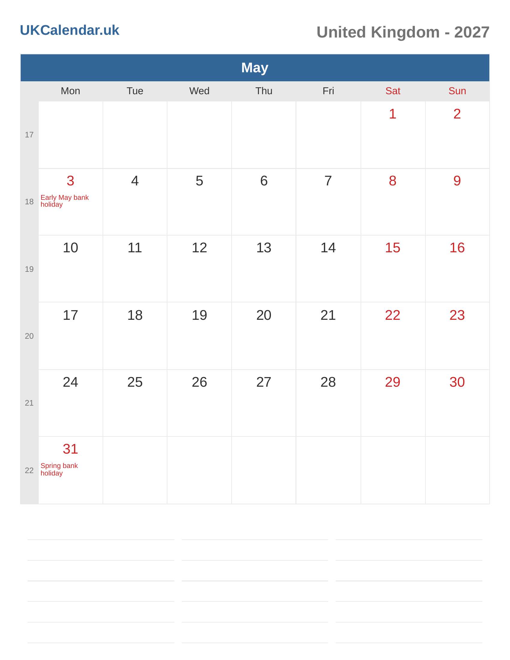 Calendar May 2027 - United Kingdom