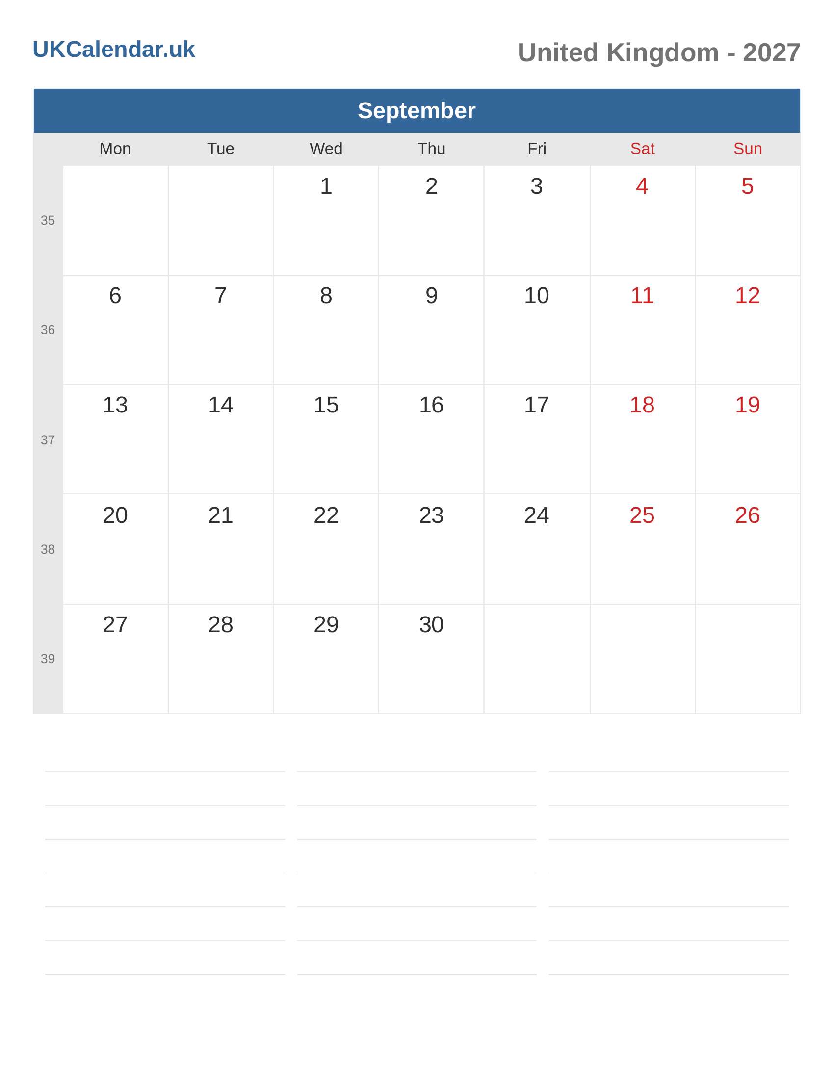 Calendar September 2027 - United Kingdom