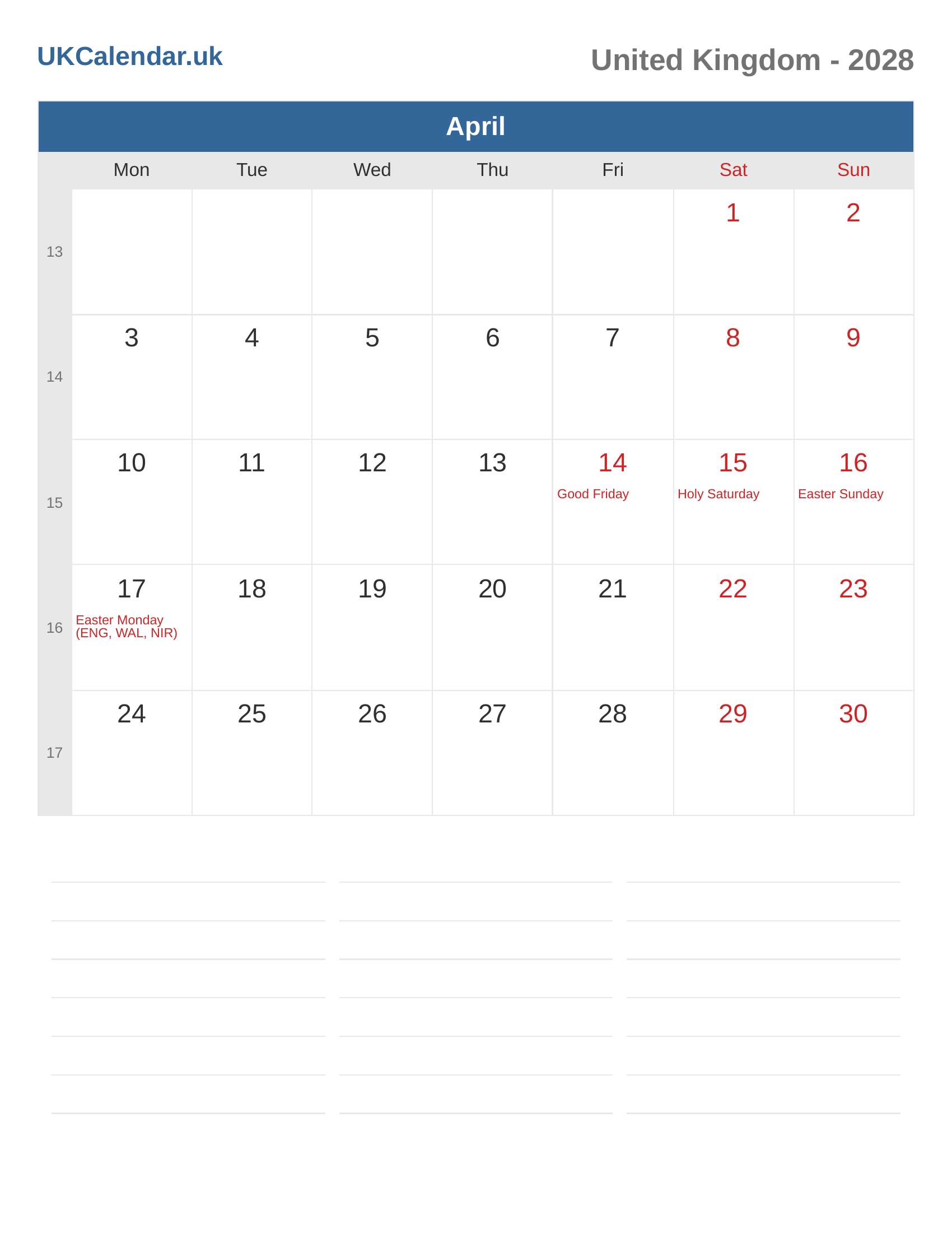 Calendar April 2028 - United Kingdom