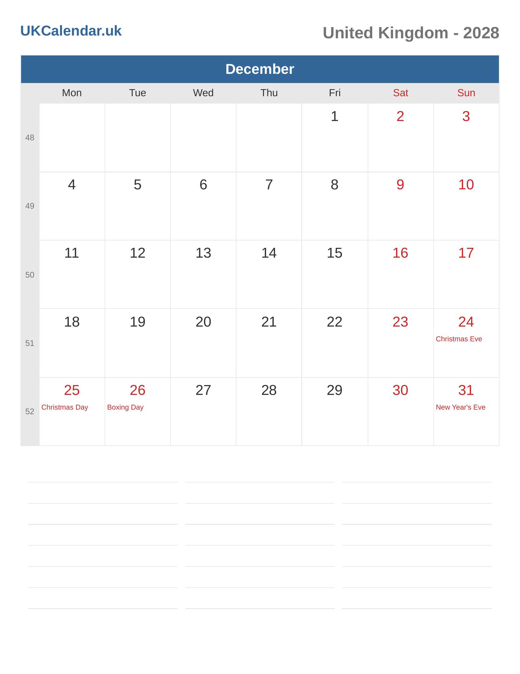 Calendar December 2028 - United Kingdom