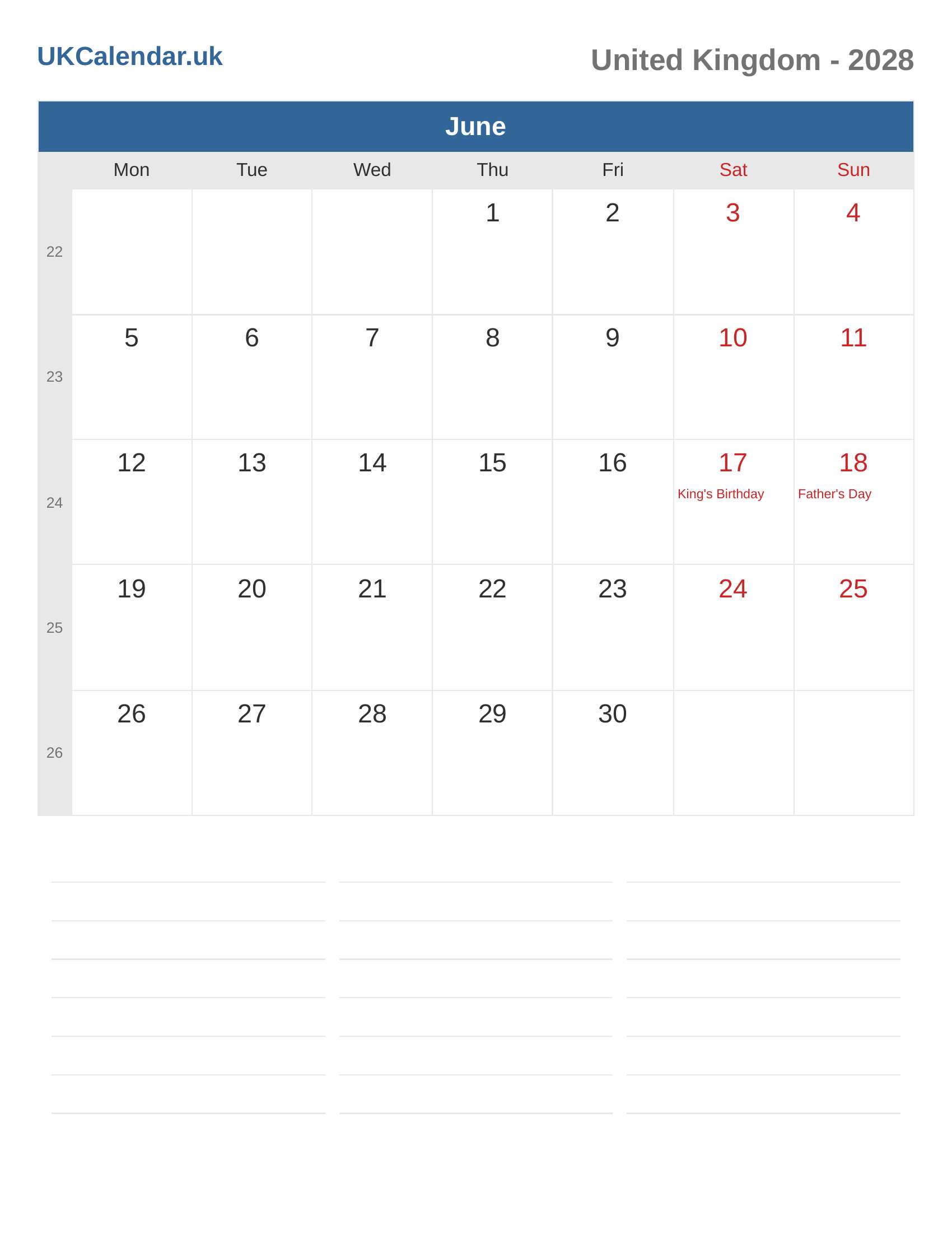 Calendar June 2028 - United Kingdom