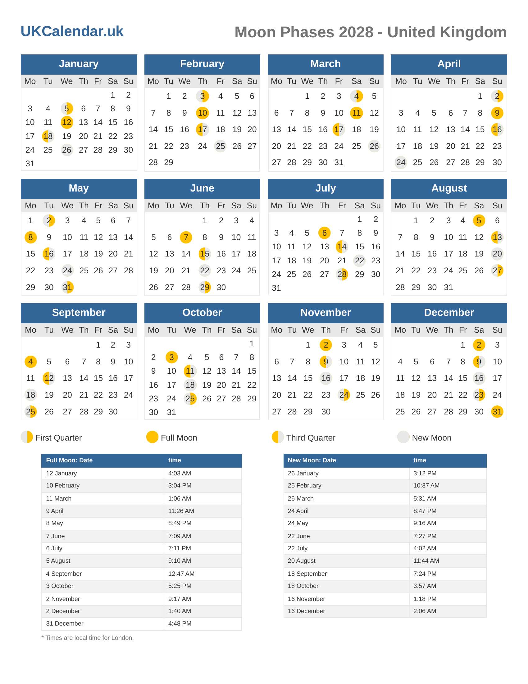 Moon Phases 2028 - United Kingdom