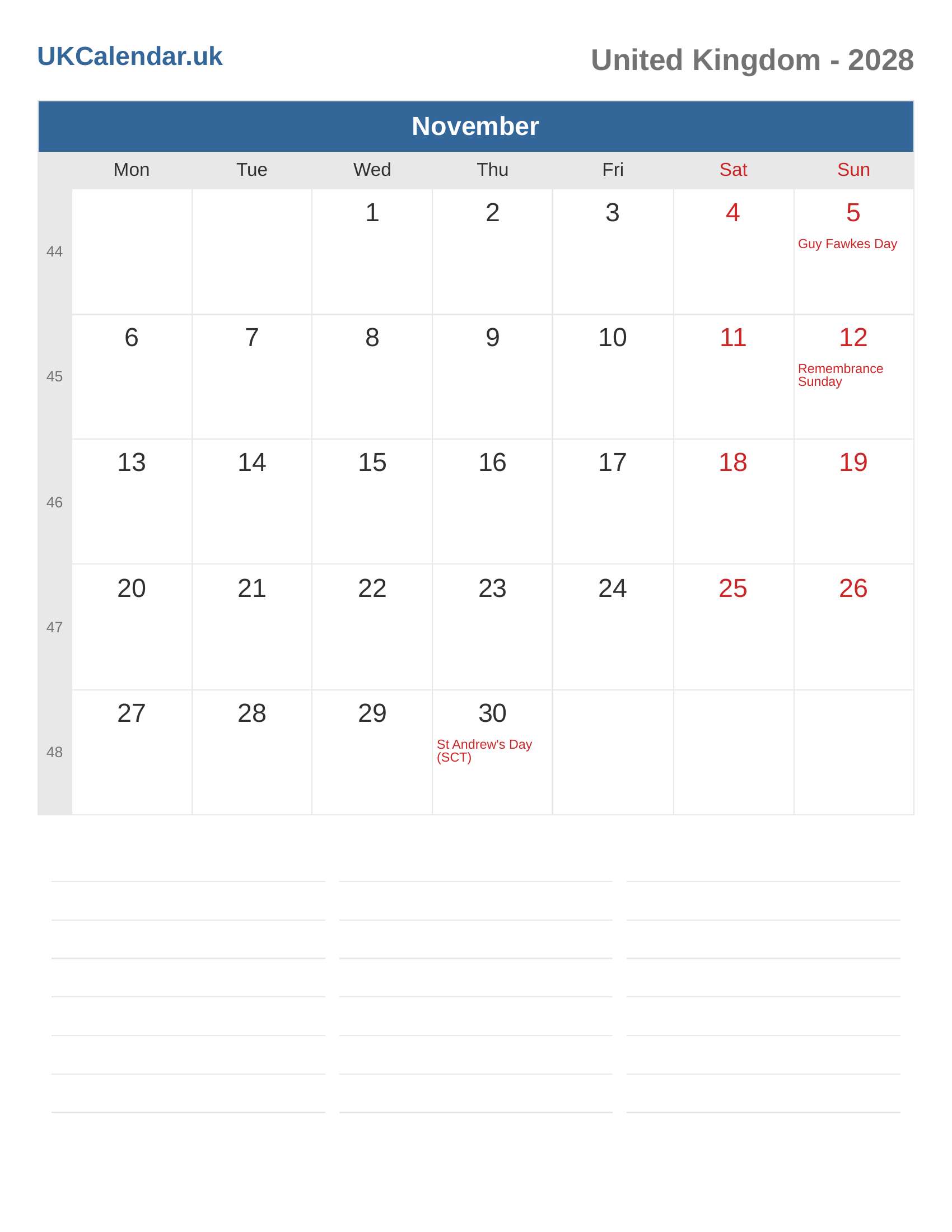 Calendar November 2028 - United Kingdom